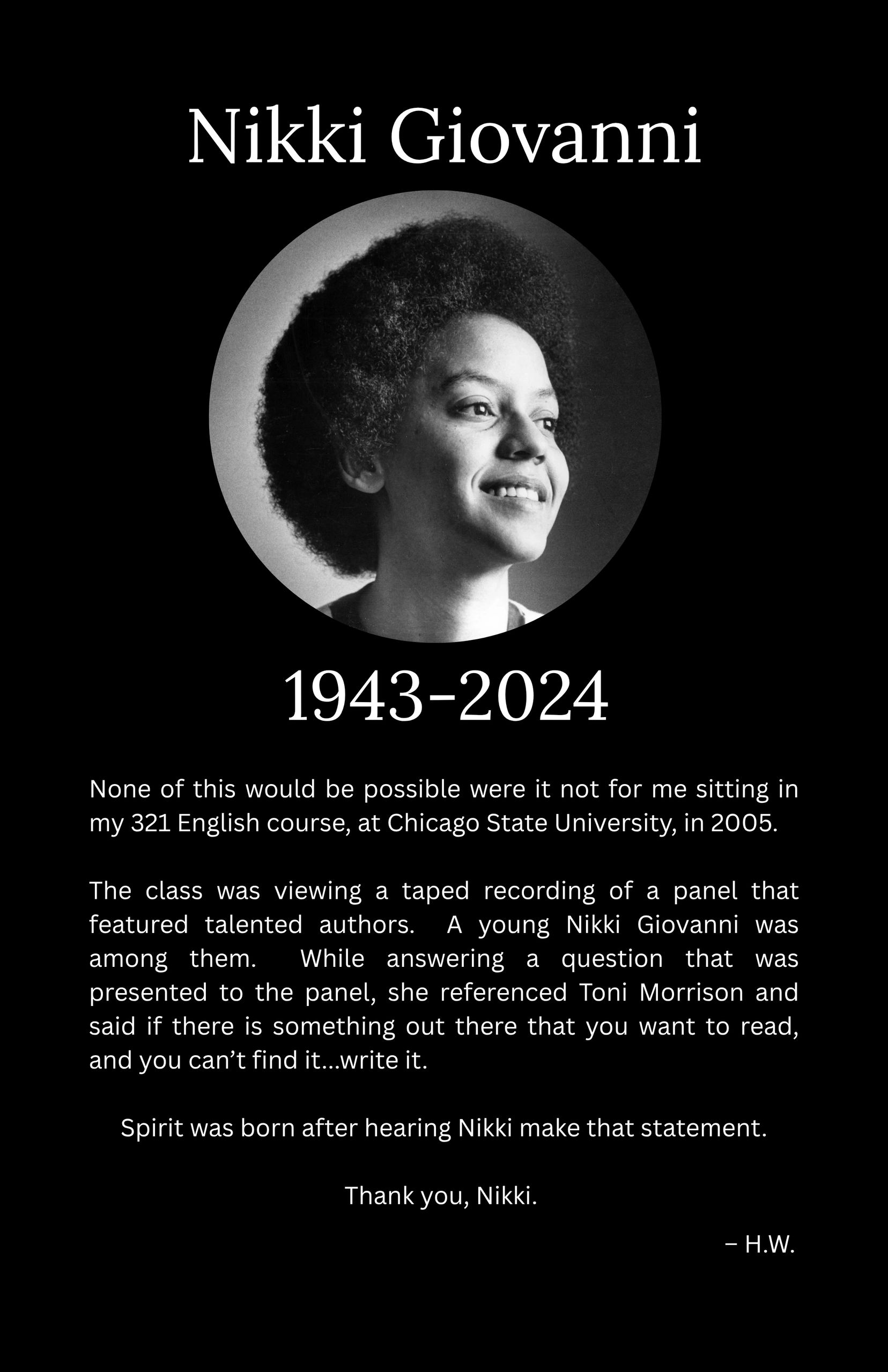 This publishing journey started in the fall of 2005, at Chicago State University. After finding inspiration from the words of Nikki Giovanni, Spirit the Woman of Hope was born. The road from 2005 to 2022 was long. I crossed paths with frustration, questions, self-doubt, and heartache, on the journey, but always continued on. Why? The love I had to write and create.